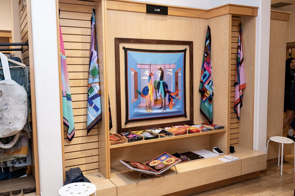 This idiosyncratic maximalist aesthetic ranges from Scarves, Textile Designs, Home décor, fashion, furniture, Wallpaper Patterns, Upholstery, Double-Sided Screens, Carpet, Textile Artwork, and so much.